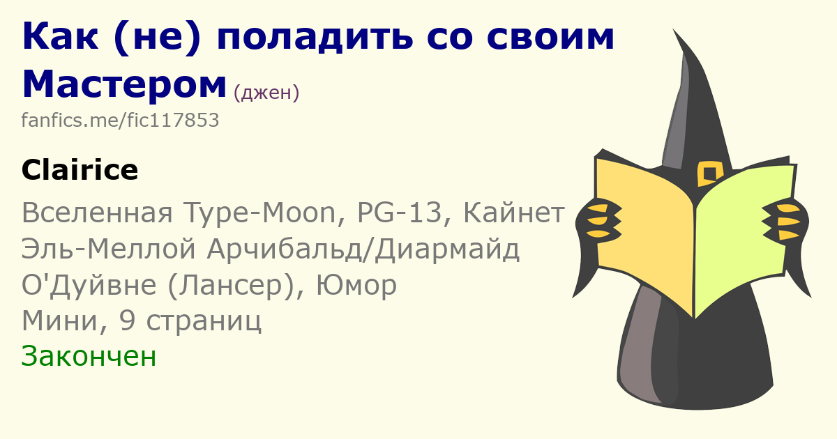| Уже второй текст по этому фандому и, скорее всего, тот же переводчик, да? Этот зашел больше. Не потому, что преслэш ))) Он бодрее написан, история взаимоотношений между Мастером и слугой, в принципе, понятна без знания то все эти люди, текст забавен. Да и перевод показался более гладким. | |